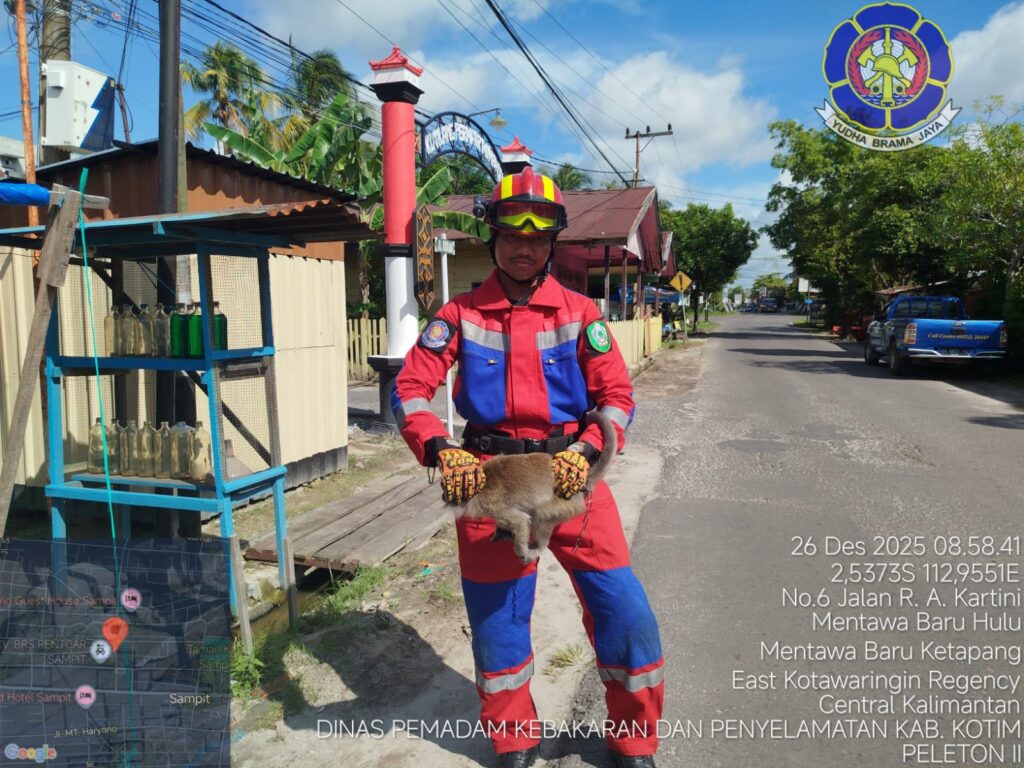 SAMPIT – Petugas Dinas Pemadam Kebakaran (Damkar) dan Penyelamatan Kabupaten Kotawaringin Timur kembali menunjukkan kesigapannya dalam menangani gangguan satwa liar. Pada Jumat (26/12/2025) pagi, tim Rescue berhasil mengevakuasi seekor monyet yang dilaporkan meresahkan warga di Jalan R.A. Kartini, Kelurahan Mentawa Baru Hulu.