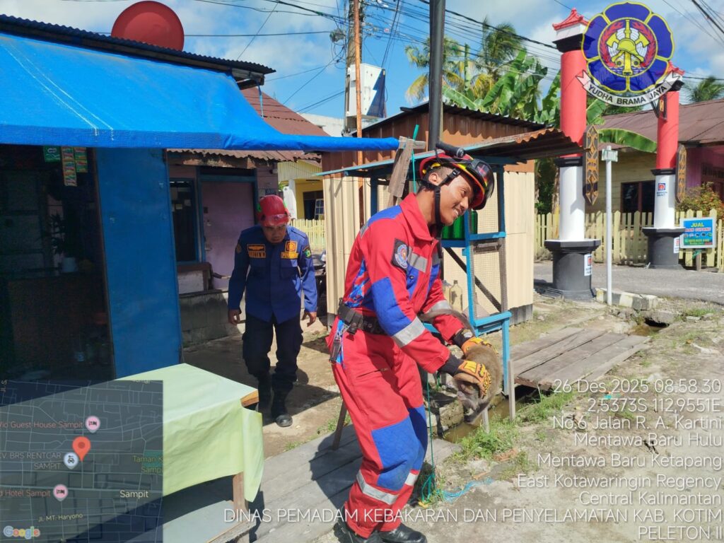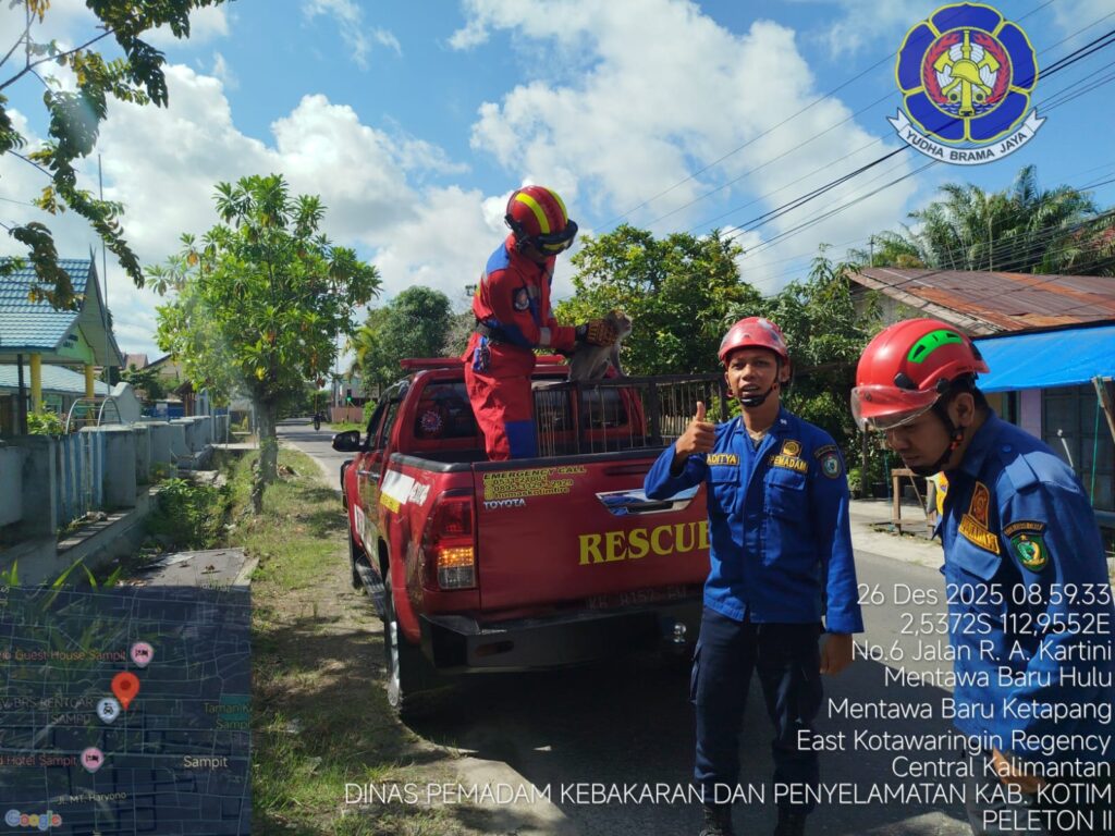 SAMPIT – Petugas Dinas Pemadam Kebakaran (Damkar) dan Penyelamatan Kabupaten Kotawaringin Timur kembali menunjukkan kesigapannya dalam menangani gangguan satwa liar. Pada Jumat (26/12/2025) pagi, tim Rescue berhasil mengevakuasi seekor monyet yang dilaporkan meresahkan warga di Jalan R.A. Kartini, Kelurahan Mentawa Baru Hulu.