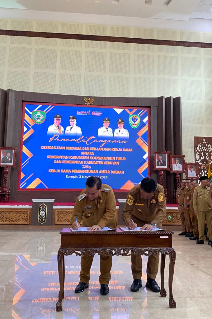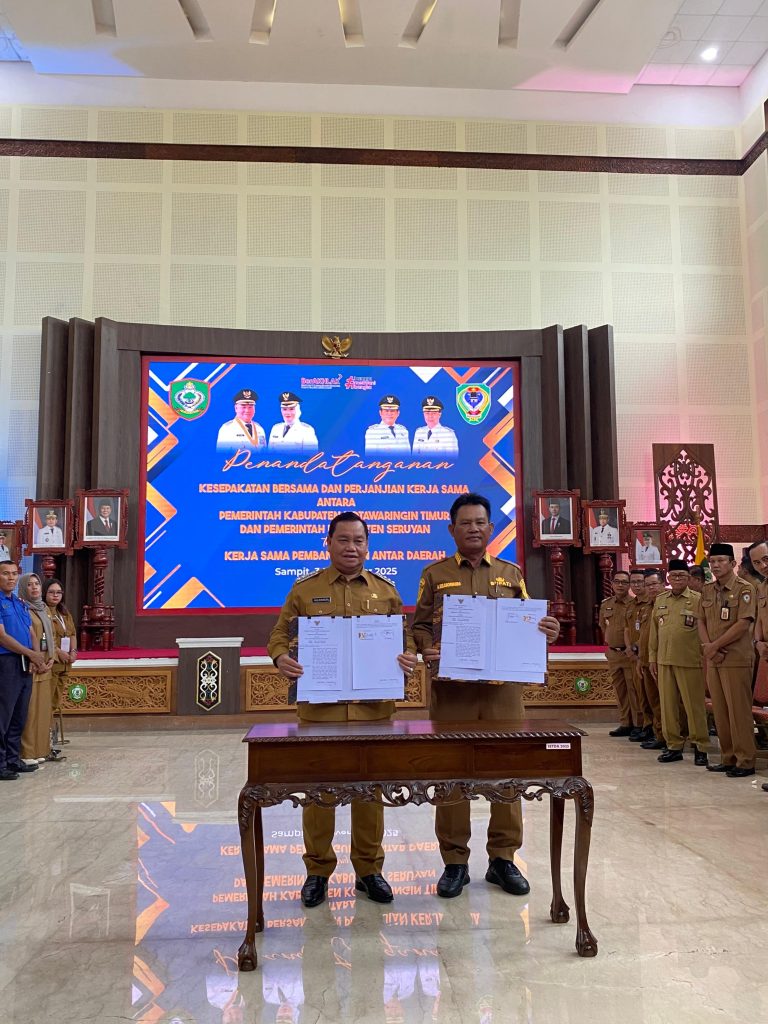 Penandatanganan Memorandum of Understanding (MoU) tersebut dilakukan langsung oleh Bupati Kotim H. Halikinnor, S.H., M.M., bersama Bupati Seruyan Ahmad Selanorwanda, S.E., M.Si , disaksikan oleh jajaran Forkopimda dan para kepala perangkat daerah dari kedua wilayah. Kerja sama ini menjadi tonggak penting dalam upaya memperkuat sinergi pembangunan, terutama mengingat kedekatan geografis dan historis kedua kabupaten di Kalimantan Tengah.