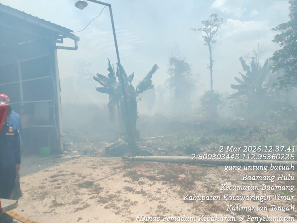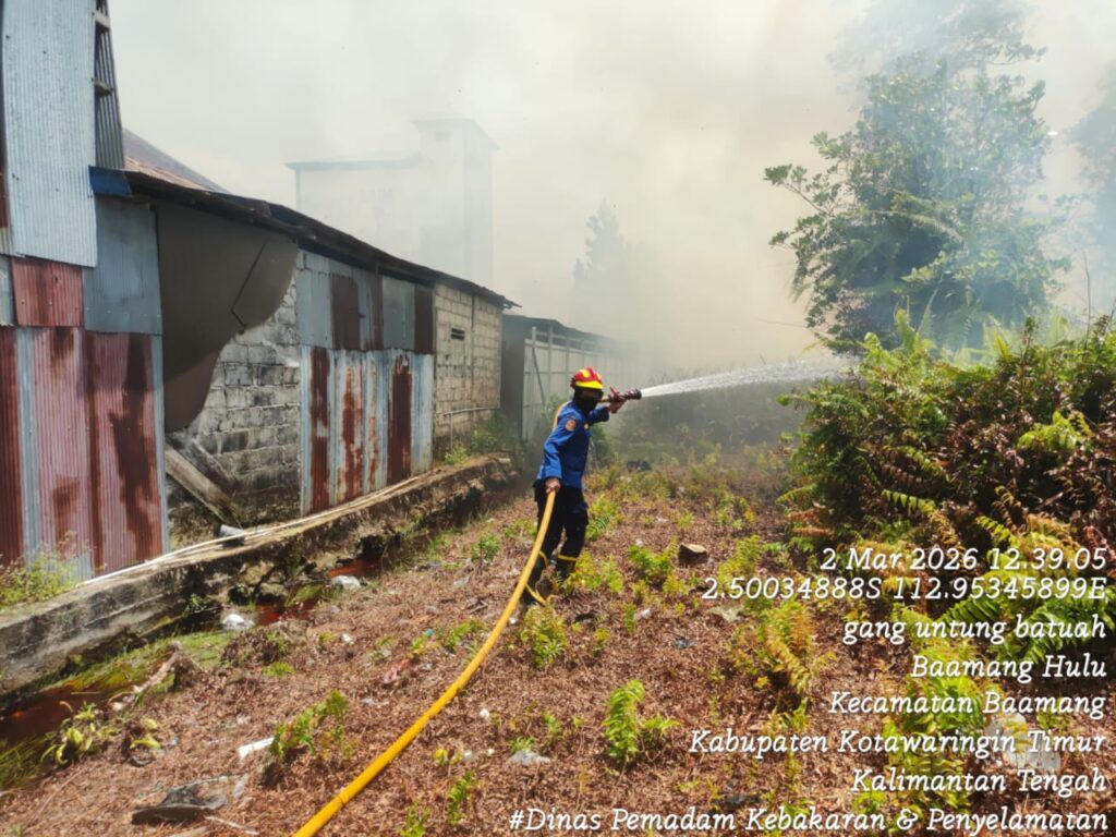 SAMPIT – Kebakaran lahan melanda kawasan pemukiman warga di Jalan Bukit Permai, Gang Famili, Kelurahan Baamang Hulu, Kecamatan Baamang, Kabupaten Kotawaringin Timur pada Senin (2/3/2026) siang. Insiden yang diduga dipicu oleh kelalaian pembakaran sampah tersebut sempat mengancam area perumahan di sekitarnya.