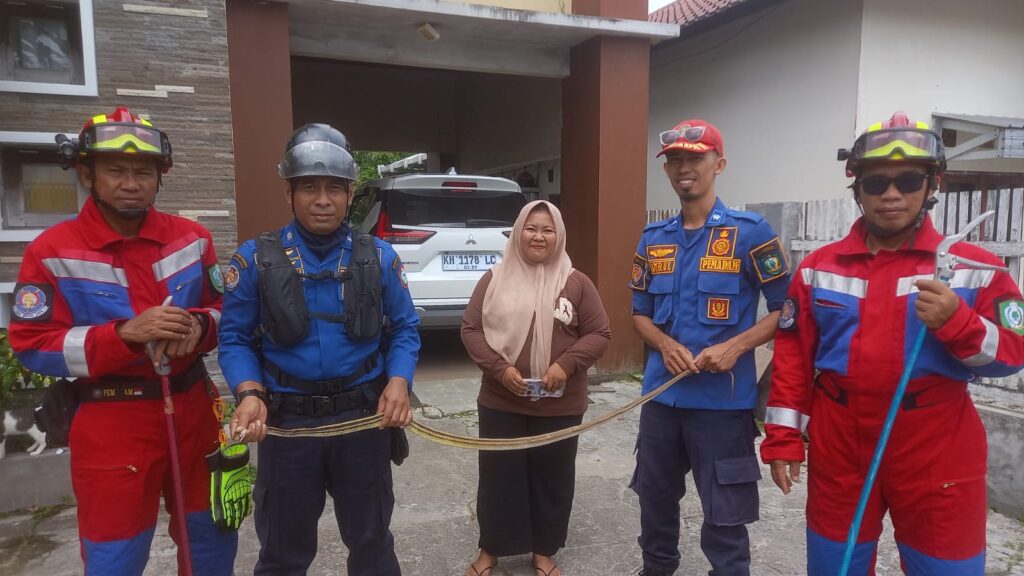 “Kami menerima laporan melalui WhatsApp Grup, bahwa ada ular masuk ke rumah warga. Untuk menghindari kemungkinan buruk atau hal yang tidak diinginkan, kami langsung menindaklanjuti permintaan bantuan tersebut,” jelas seorang petugas Damkar.